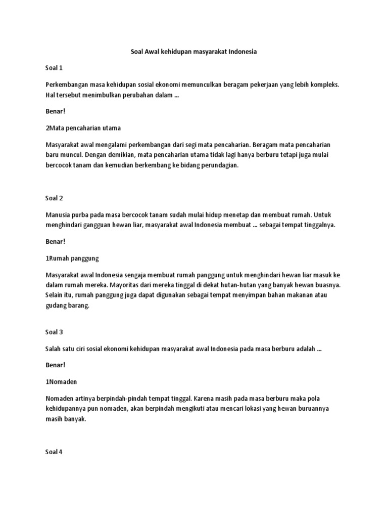Soal Awal Kehidupan Masyarakat Indonesia Docx