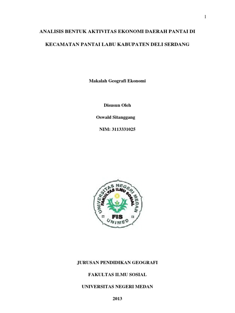 Analisis Bentuk Aktivitas Ekonomi Penduduk Daerah Pantai Kecamatan