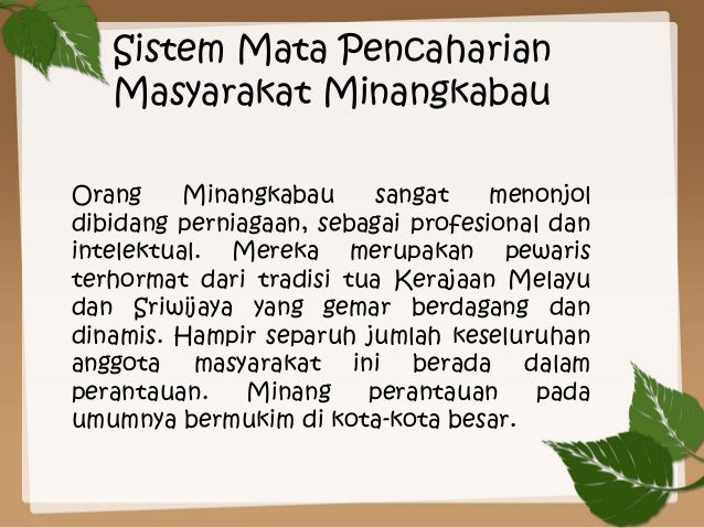 Sajian Kelompok 6 Antropologi Sistem Mata Pencaharian Minangkabau
