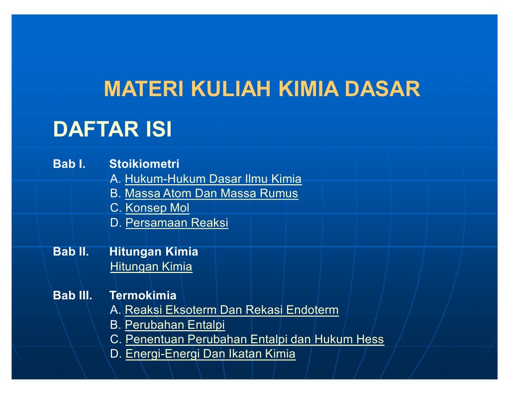 Ppt Materi Kuliah Kimia Dasar Daftar Isi Powerpoint Presentation