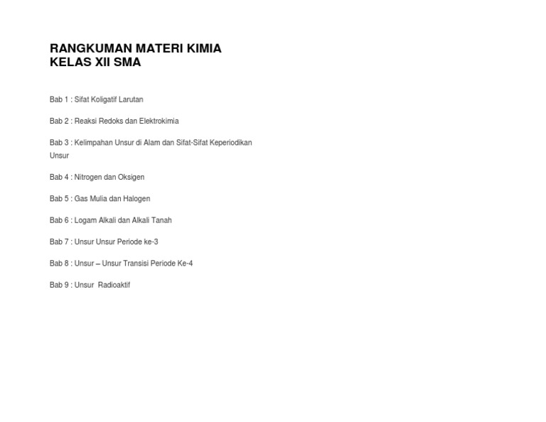 Rangkuman Materi Pelajaran Kimia Kelas 12 Sma Rangkuman Kimia Kelas