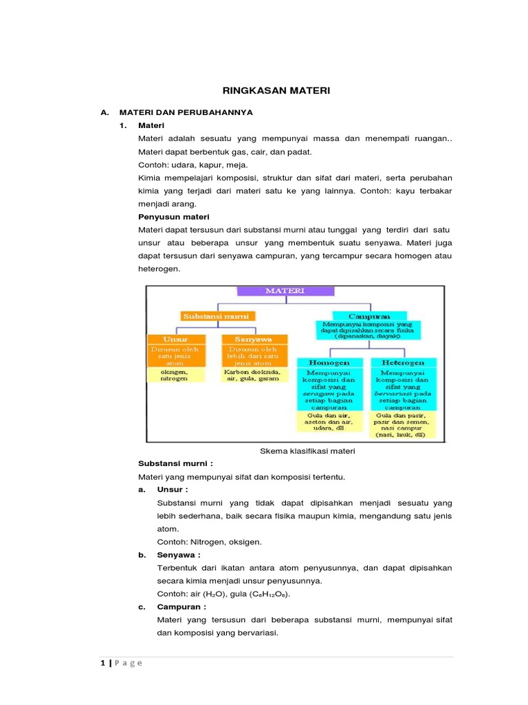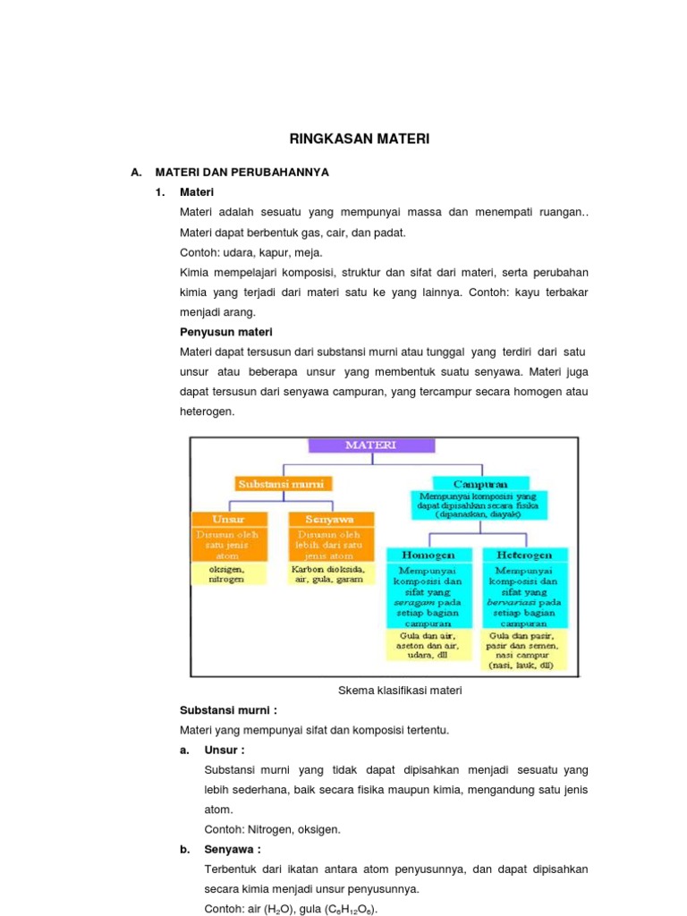 Klasifikasi Materi Kimia Serta Sifat Sifat Dan Perubahannya My