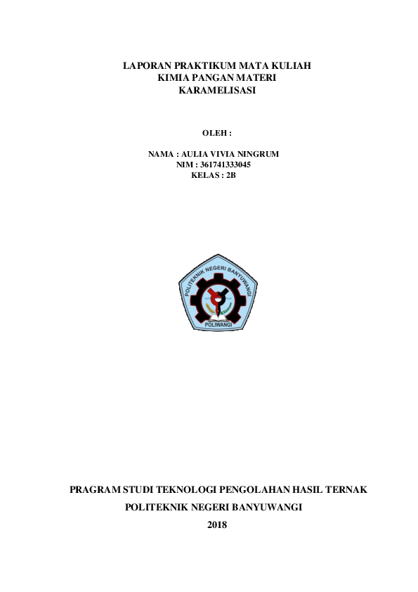 Laporan Praktikum Mata Kuliah Kimia Pangan Materi Karamelisasi