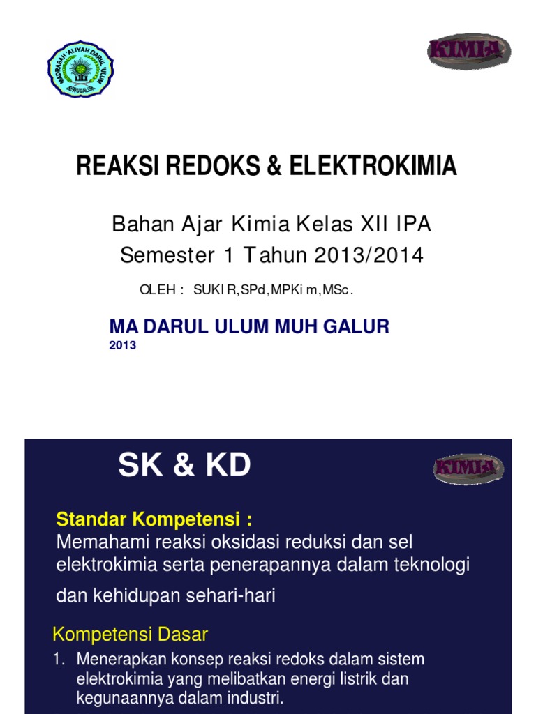 Reaksi Redoks Kelas Xi Semester 1 Reaksi Redoks Kelas Xi Semester