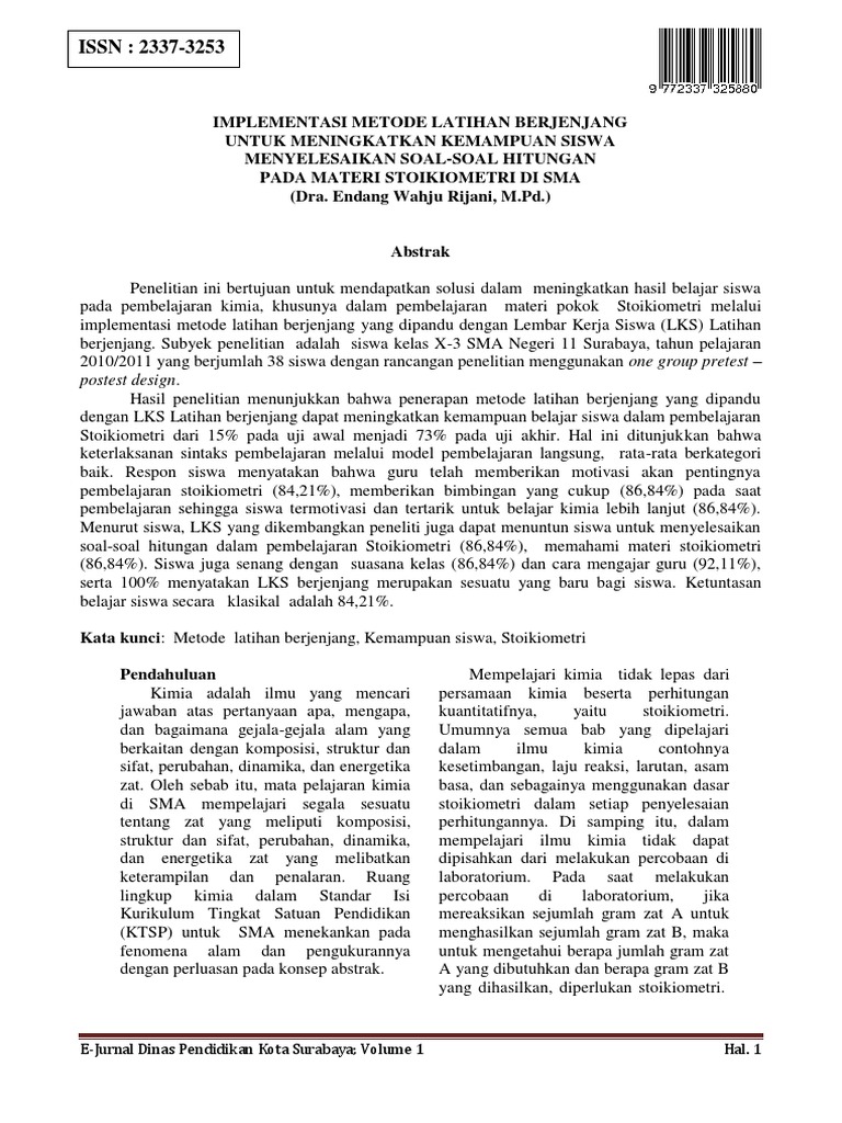 Pdf Analisis Soal Soal Ujian Materi Stoikiometri Sma Negeri Kota