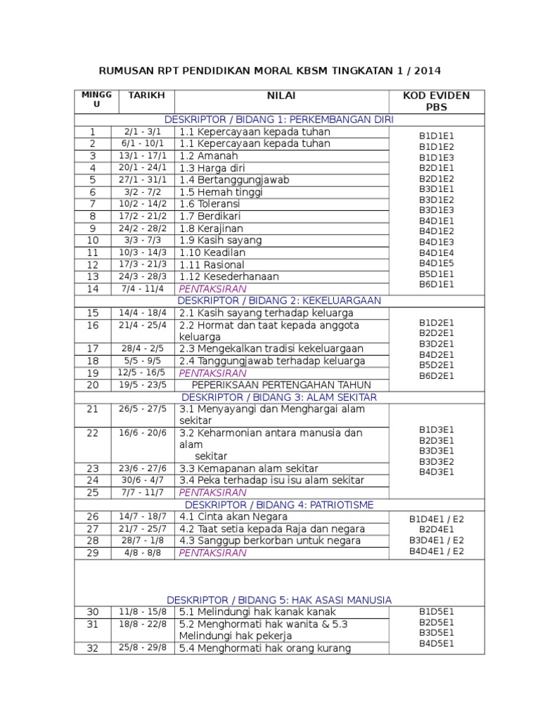 Rumusan Rpt Pendidikan Moral Kbsm Tingkatan 1