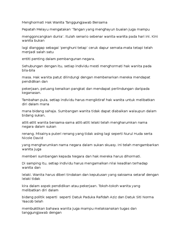 Menghormati Hak Wanita Tanggungjawab Bersama