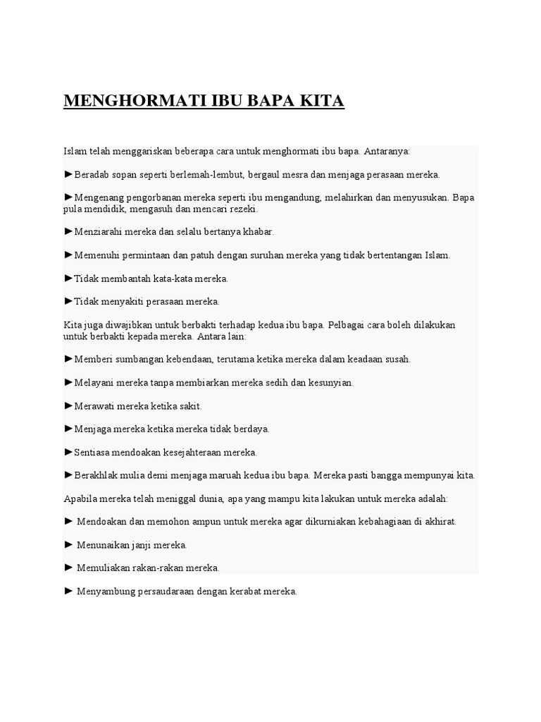 Menghormati ibu bapa. 2 anak yang patuh kepada ibu bapamendapat keredhaan dari al. Ibu bapa harus memainkan peranan penting mendidik anak anak perlu menitikberatkan sikap kasih sayang terhadap orang tua kepada anak anak mereka dengan. Tajuk syarahan yang diberikan ialah pentingnya anak anak menghormati ibu bapa.