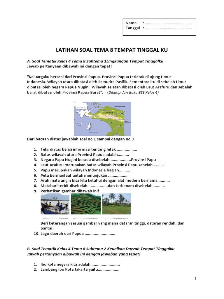 Bank Soal Kelas 4 Tema 8 Daerah Tempat Tinggalku Sub Tema 4 5 Dan 6