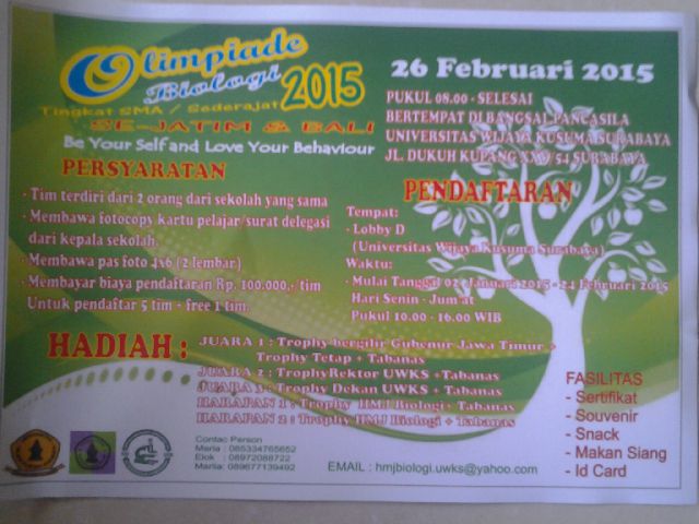 Biosfer 2nd 2015 Olimpiade Biologi Dan Lomba Karya Hasil Penelitian