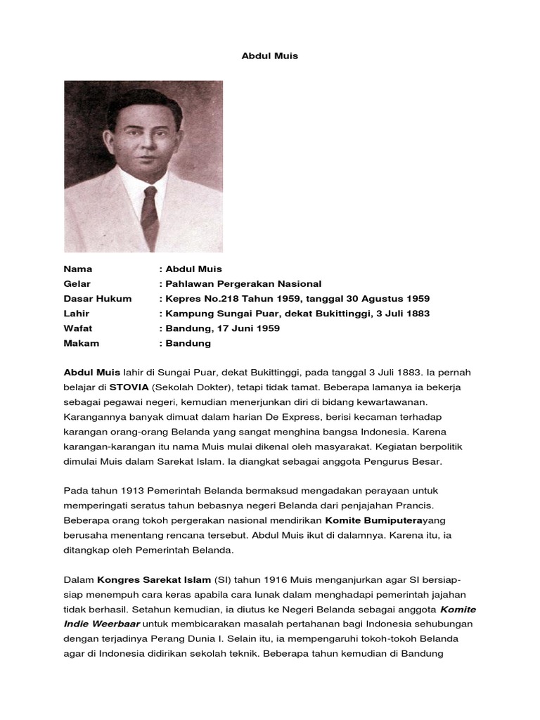 Abdul muis pernah menjadi pelajar stovia sekolah dokter tetapi tidak tamat karena sakit. Pahlawan nasional indonesia. Abdul muis lahir di sungai puar.