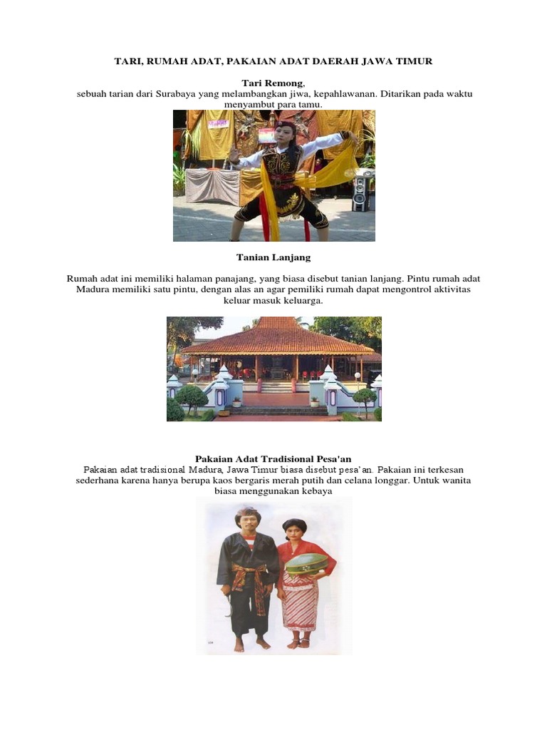 Jawa Timur Tarian Adat Senjata Tradisional Makanan Tradisional