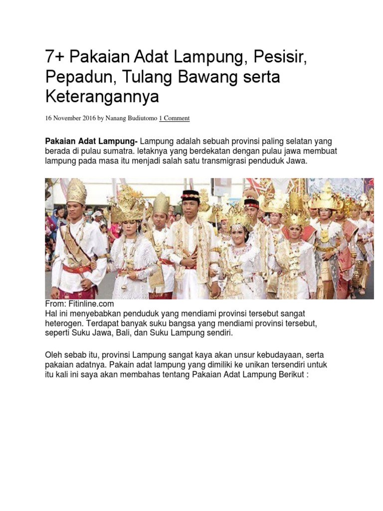 Gambar Pakaian Adat Tulang Bawang Imgurl