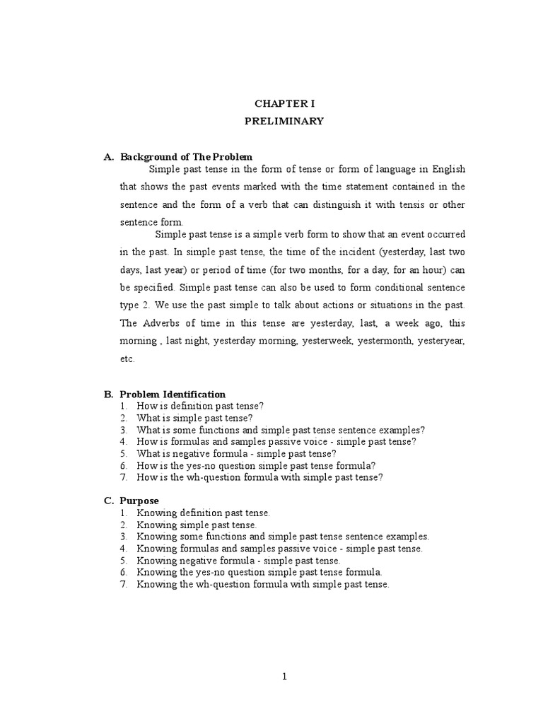 Definition Of The Simple Past Tense