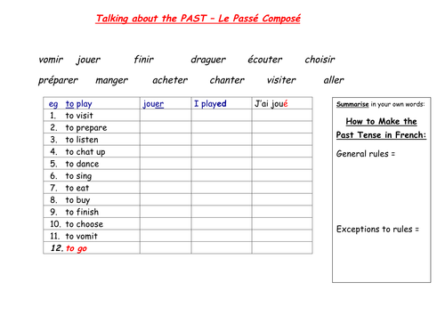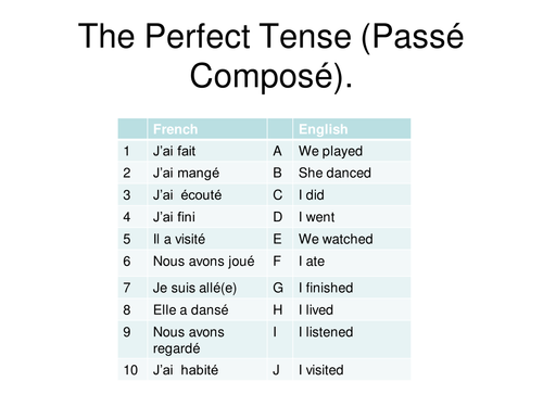 The Perfect Tense In French How To Form The Past Tense Gcse