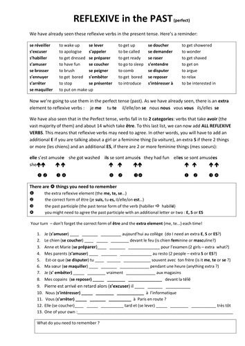 French Reflexive Verbs In The Past By Anyholland Teaching