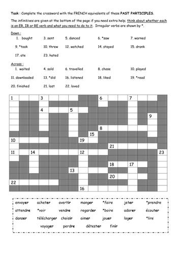French Past Tense Past Participles Crossword By Lauz106 Teaching