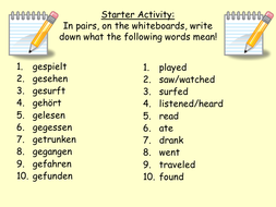 German Past Tense Practice By Alastairswift Teaching Resources Tes