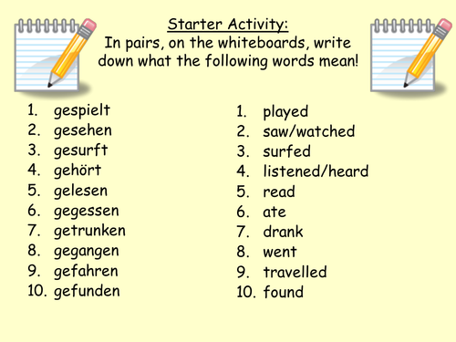 Perfektform The Perfect Tense Past Year 9 German