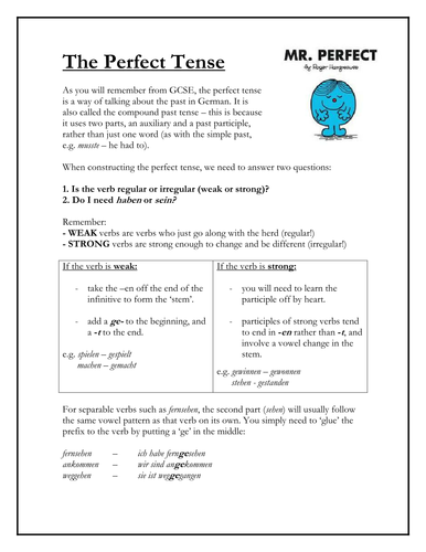 Perfect Tense 1 German Teacher Resourcesgerman Teacher Resources