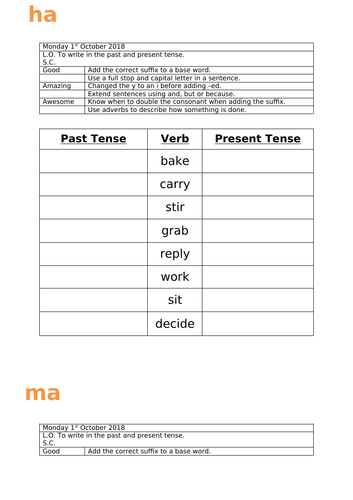 Past Tense Worksheets By Kryztal Teaching Resources Tes