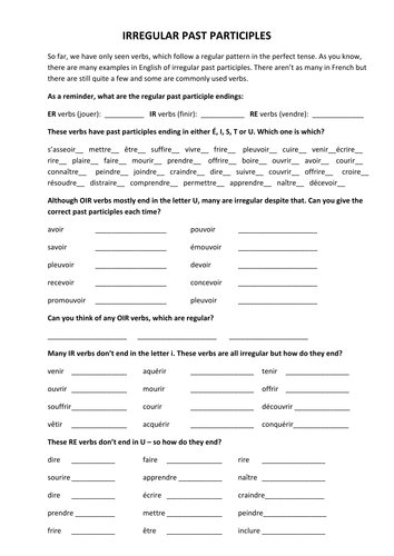 French Irregular Past Participles By Anyholland Teaching Resources