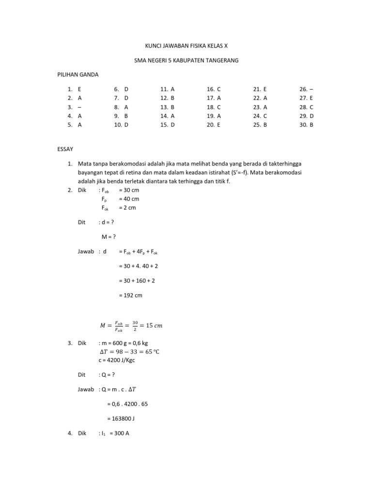 Soal Dan Jawaban Fisika Kelas X Semester 1 Pembelajaranfisika