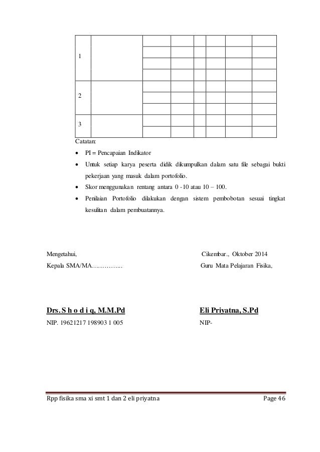 Rpp Fisika Sma Kelas Xi Sman 1 Cikembar Eli Priyatna Kurikulum 2013