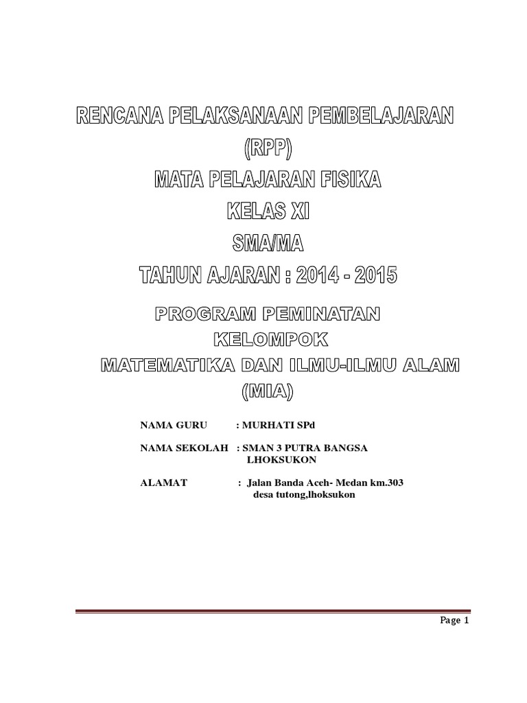 Rpp Fisika Sma Kelas 11 Kurikulum 2013 Revisi 2014 Diva Pendidikan
