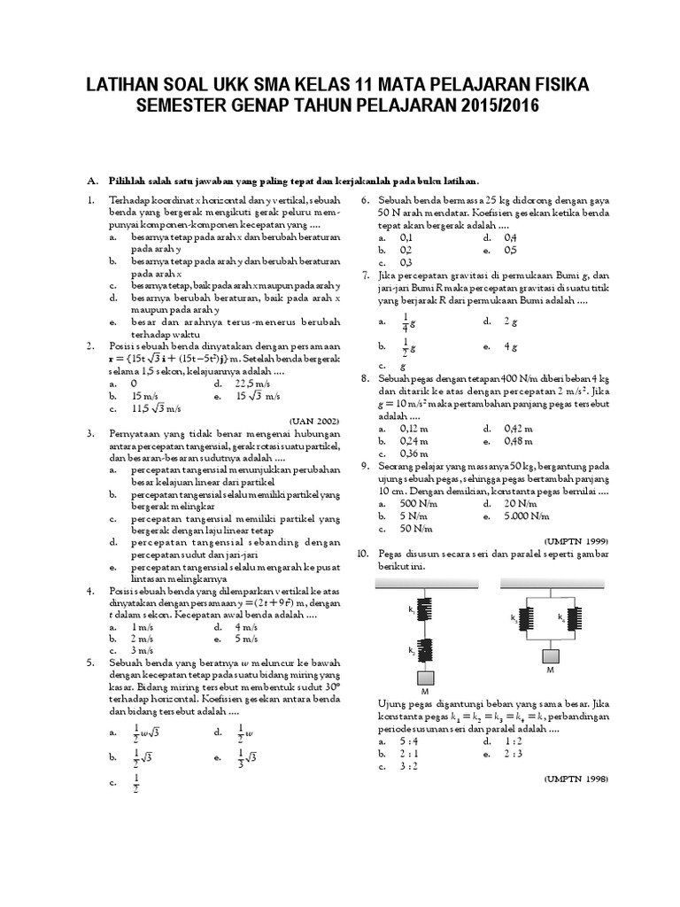 Soal Ukk Fisika Sma Kelas 11 Pdf