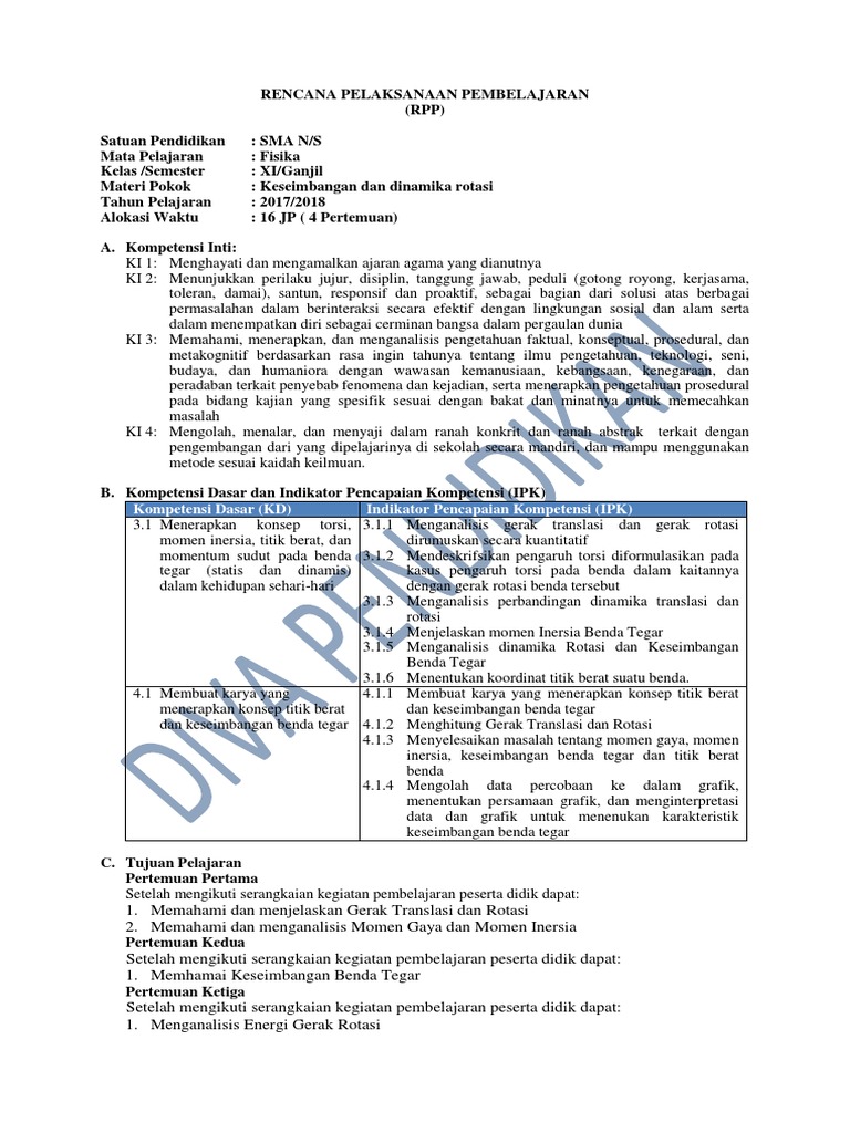 Rpp Silabus Fisika Kelas 11 Sma Tahun Pelajaran 2017 2018