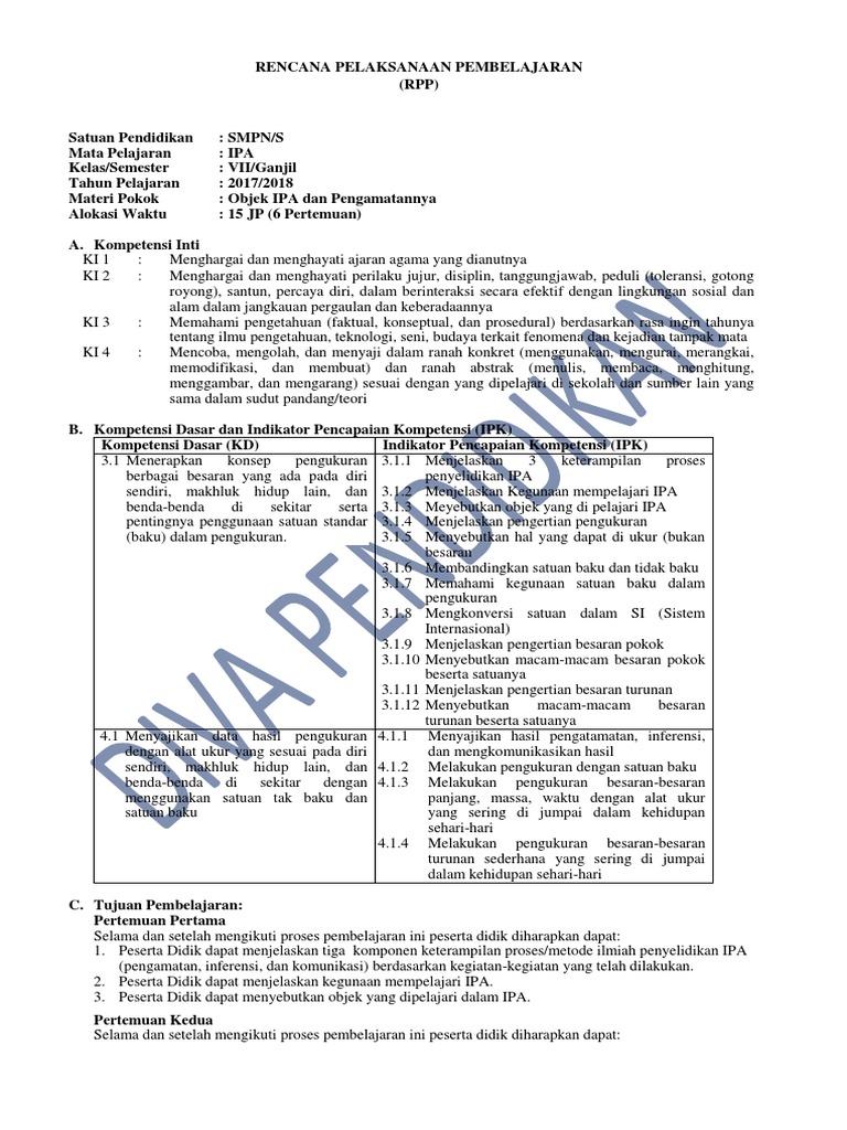 Rpp Ipa Kelas 7 Smp Mts Semester 1 Kurikulum 2013 Tahun 2018 2019