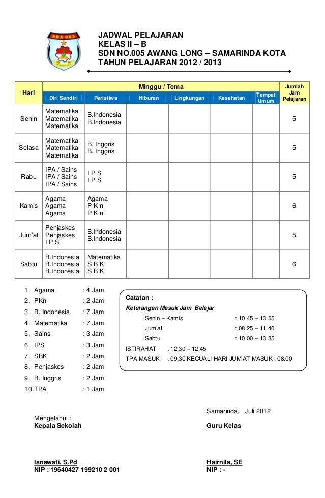 Jadwal Pelajaran Kurikulum 2013 Sd Per Jp Lengkap Portal Edukasi