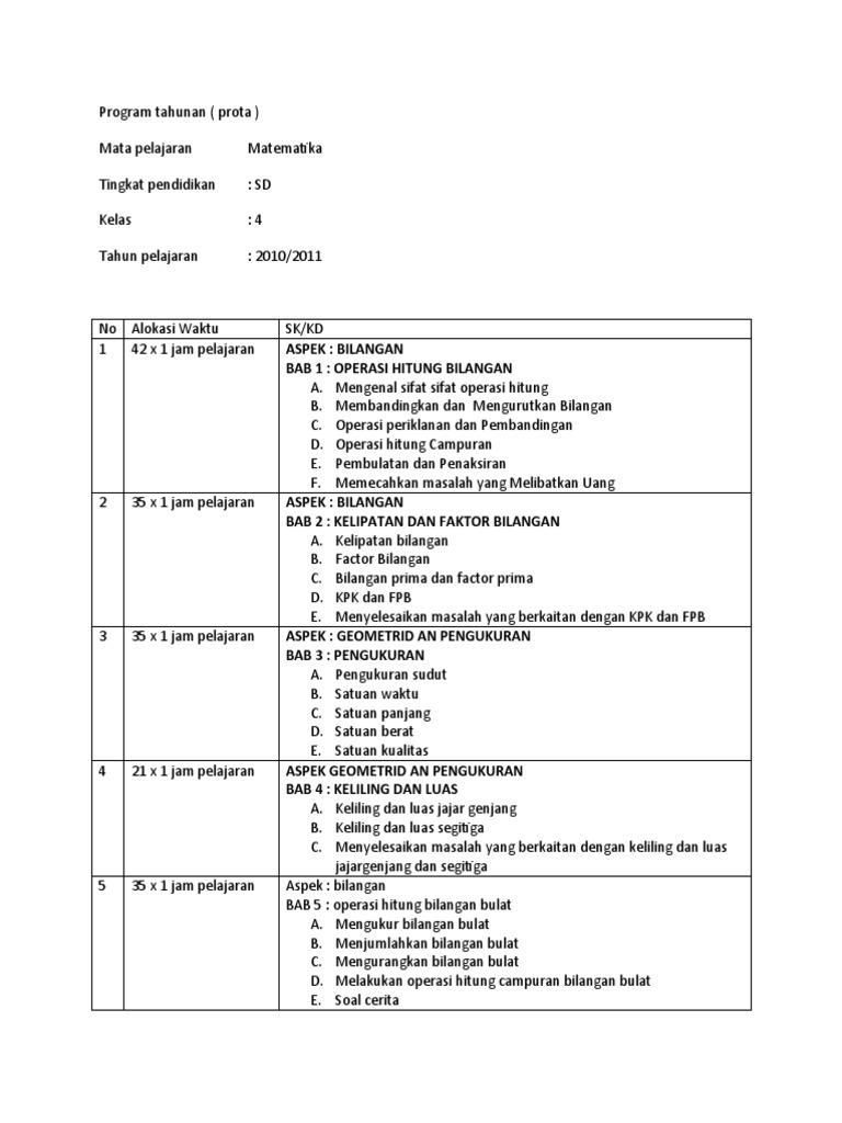 Prota Dan Promes Matematika Kelas 5 Sd Mi K13 Revisi 2018