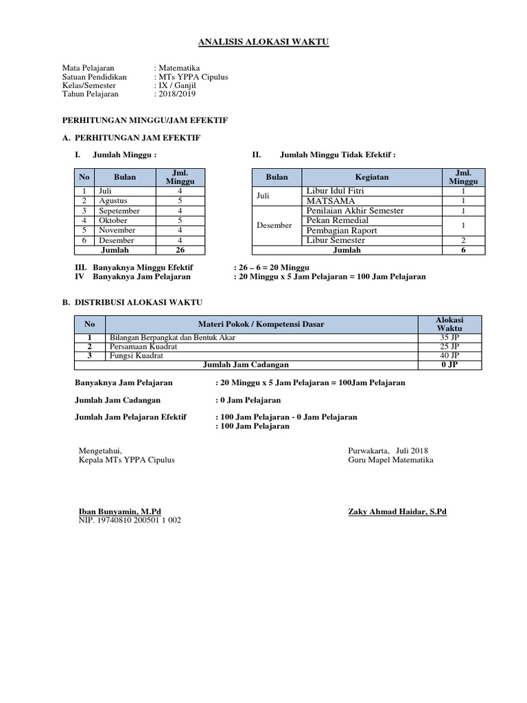 Perhitungan Minggu Dan Jam Efektif