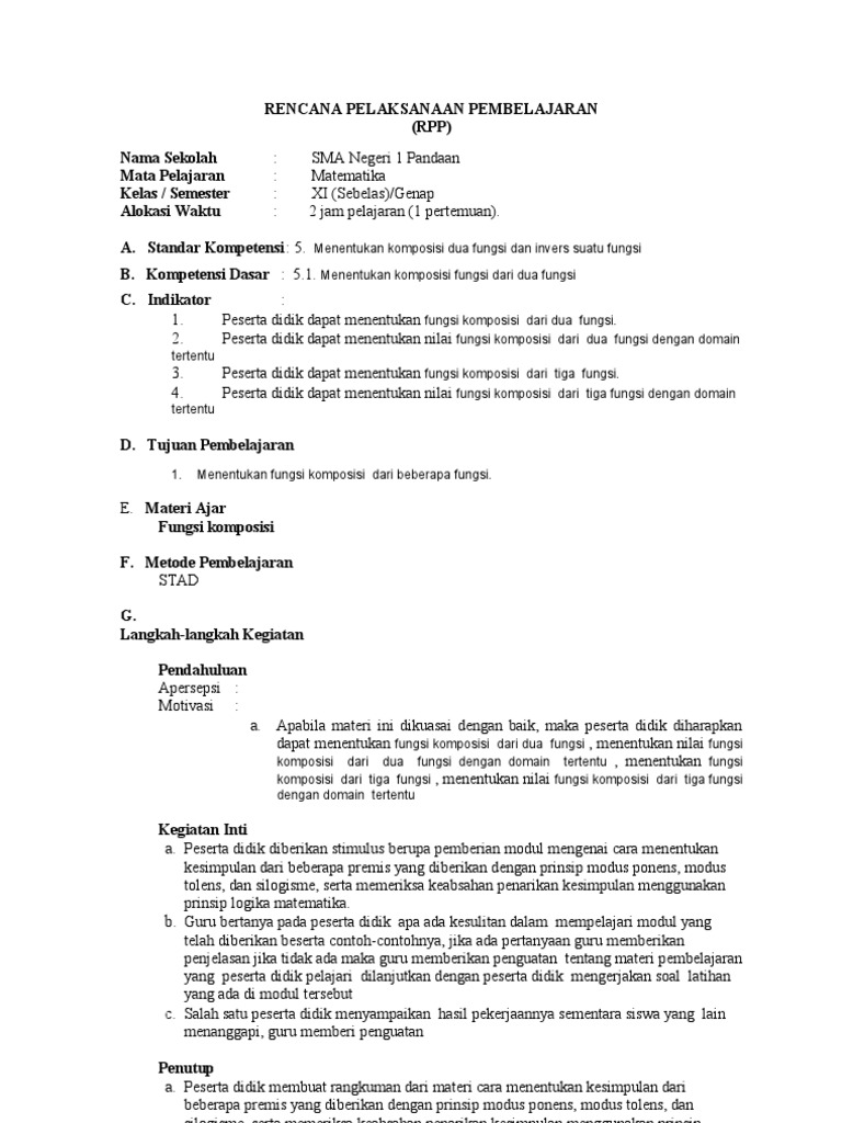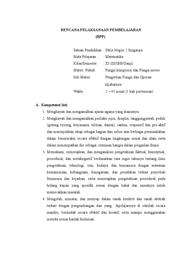 Rencana Kegiatan Pembelajaran Rpp Fungsi Komposisi Dan Fungsi