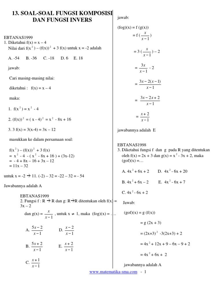13 Soal Soal Fungsi Komposisi Dan Fungsi Invers
