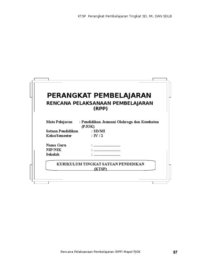 Rpp Dan Silabus Pjok Kelas I Sampai Vi Sd Mi Ktsp Ngintip Sekolah