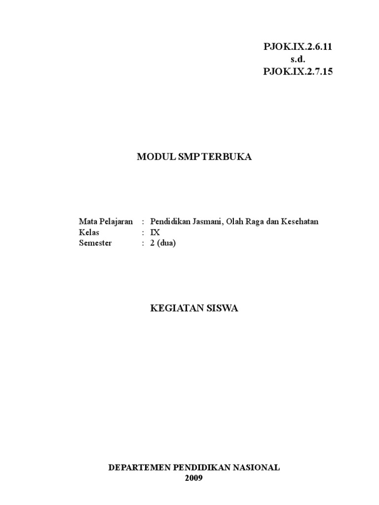 Smp Kelas 9 Penjaskes Diknas Jl 3 Ktsp
