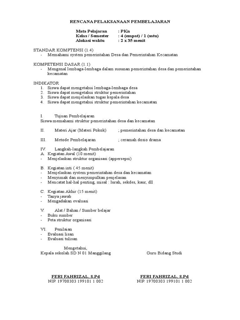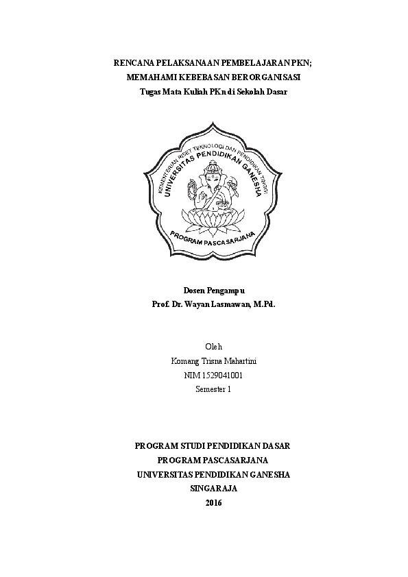 Rencana Pelaksanaan Pembelajaran Pkn Komang Trisna Mahartini