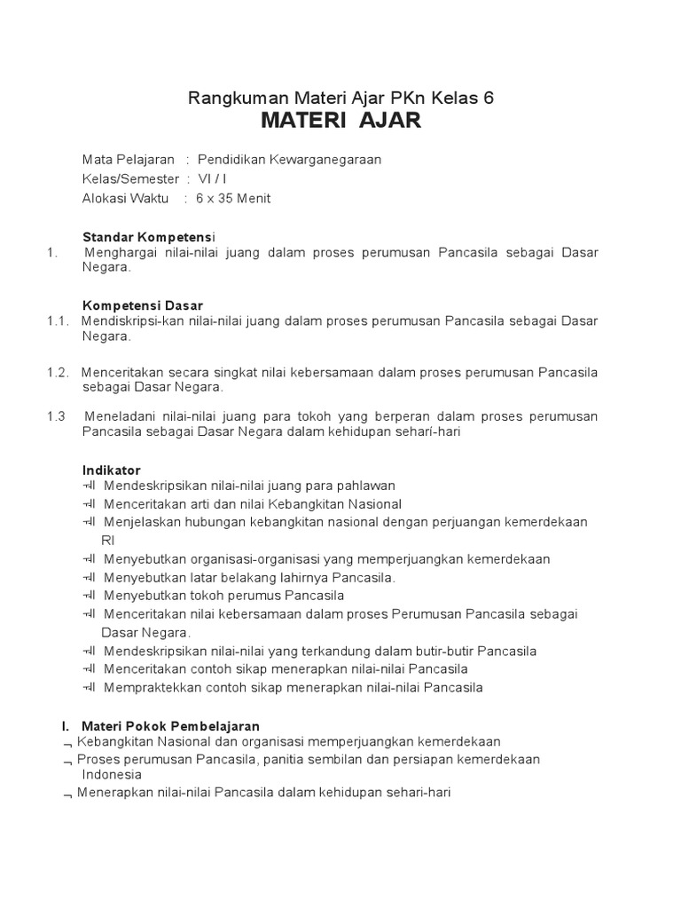 Rangkuman Materi Ajar Pkn Kelas 6 Materi Ajar Pdf Free Download