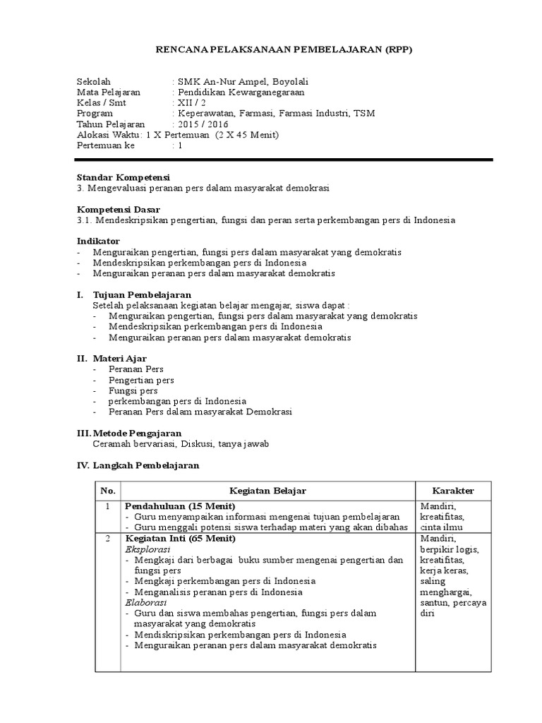 Pkn 05 Sk 14 Rencana Pelaksanaan Pembelajaran R Pp Nama Sekolah