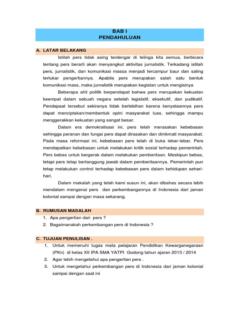 Makalah Perkembangan Pers Di Indonesia Sma Yatpi Godong
