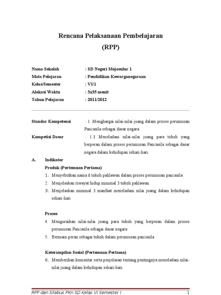 Rpp Kelas Vi Pkn Semester 1 Nilai Juang Dalam Perumusan Pancasila