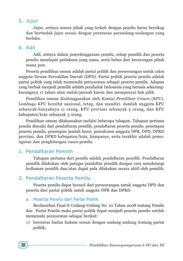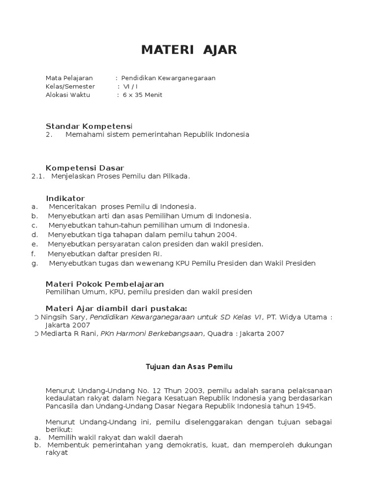 Pemilihan Umum Dan Pemilihan Kepala Daerah Pelajaran Pkn Sd Mi