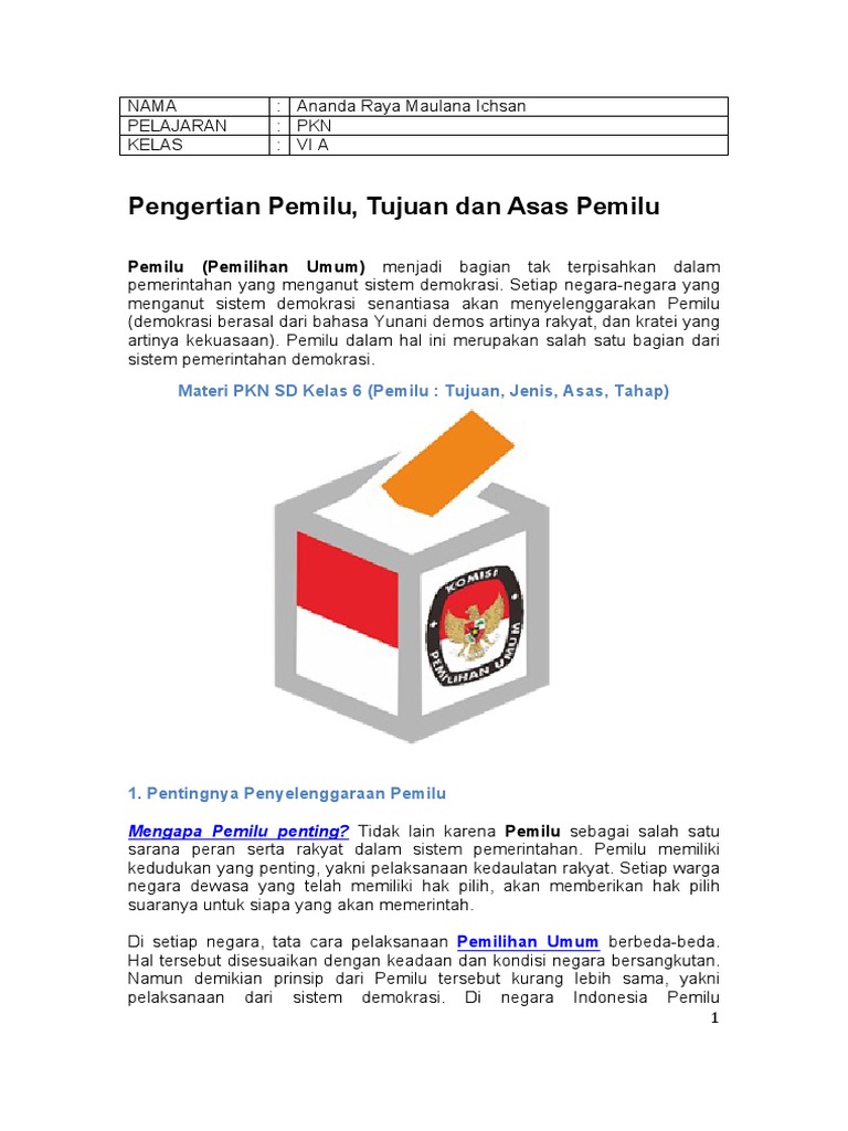Pelajaran Pkn Tentang Pemilu