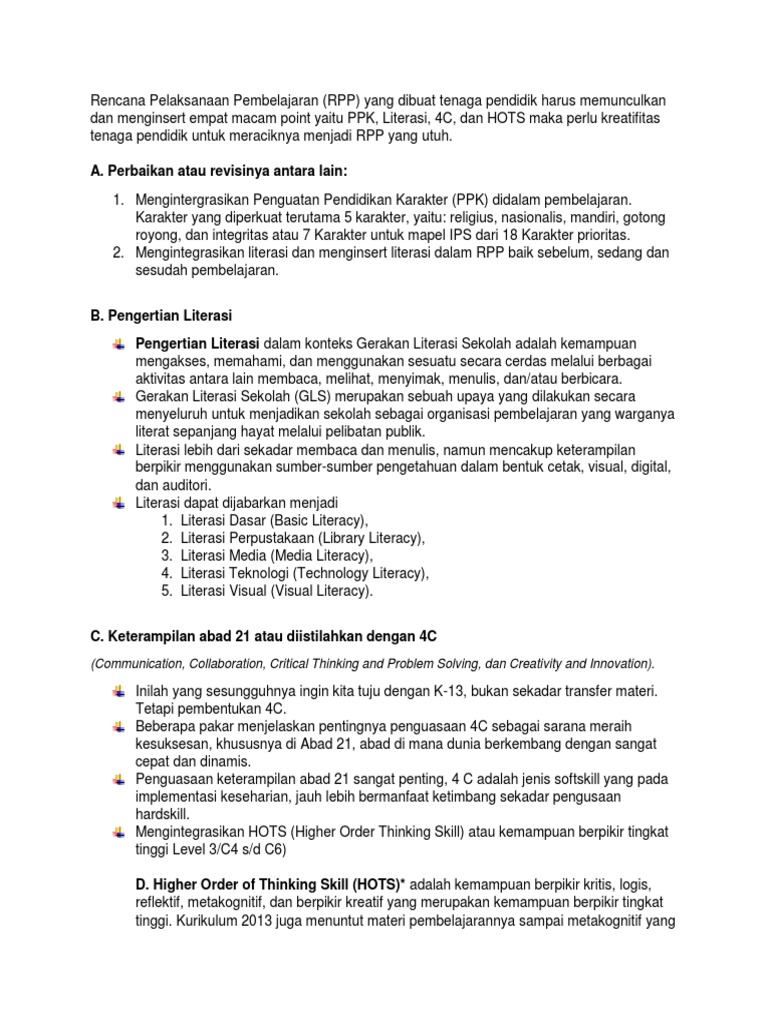 Mengintegrasikan Ppk Literasi 4c Dan Hots Dalam Membuat Rpp