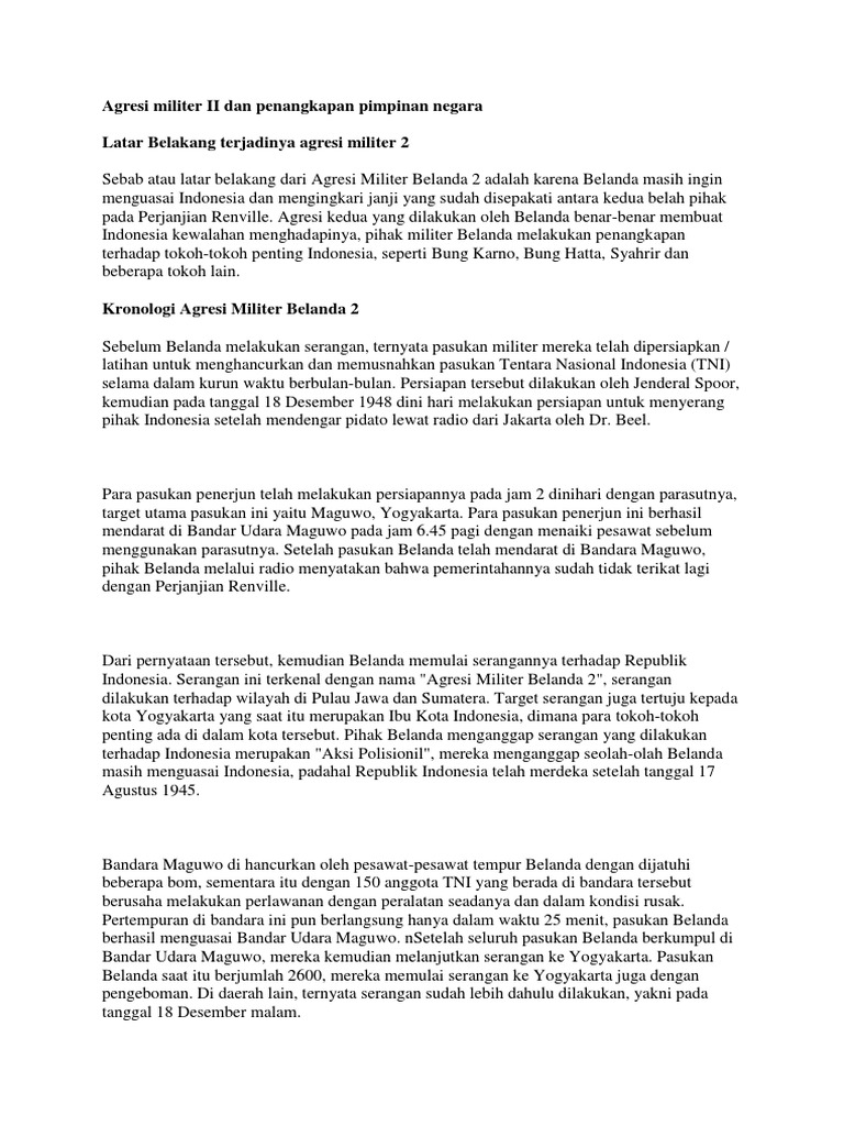 Sebuah peristiwa militer mengasumsikan adanya perang antara. Pada saat itu jumlah tentara belanda telah. Agresi militer belanda 2 ini mengundang reaksi dan.