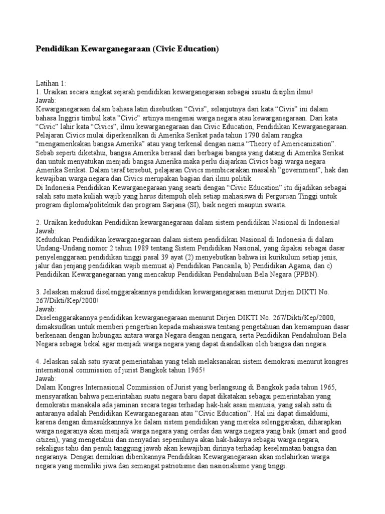 Sejarah Singkat Perkembangan Civics Dan Pendidikan Kewarganegaraan Docx