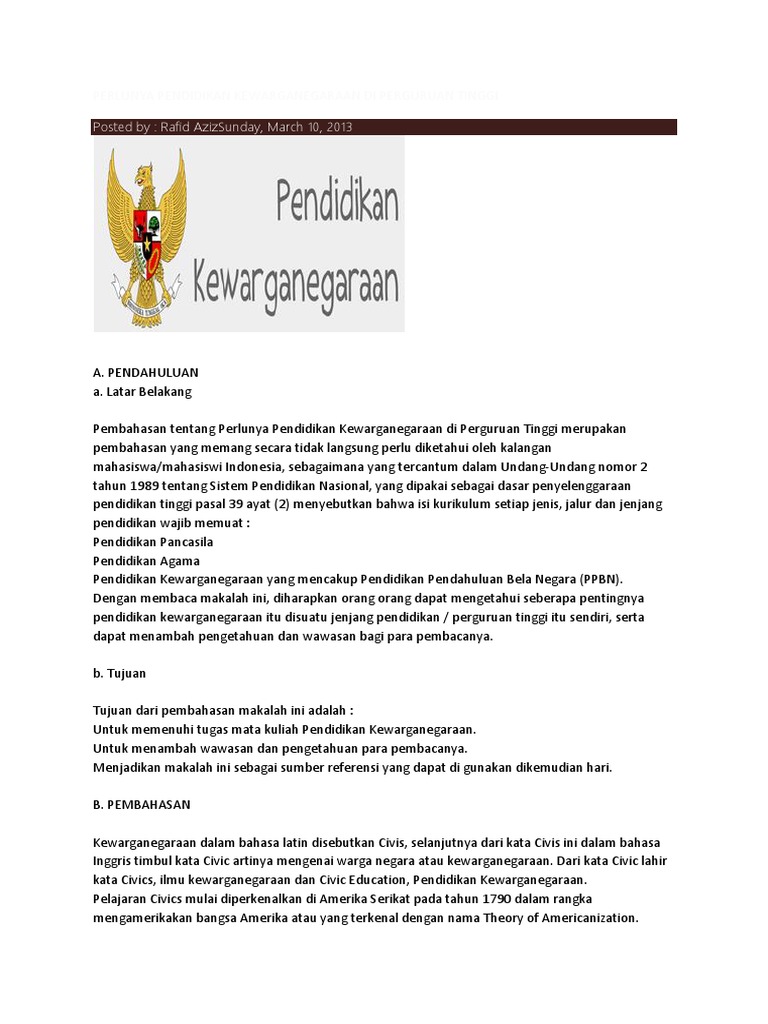Pkn Di Perguruan Tinggi Muhammad Tiara Academia Edu